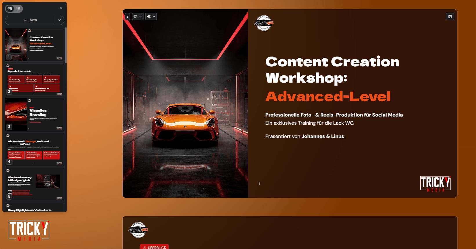 Ein zentraler Bestandteil des Projekts ist der Wissenstransfer an das interne Team. Dazu führten wir zwei praxisorientierte Workshops durch: einen Workshop zu fortgeschrittener Content Creation mit Fokus auf branchenspezifische Inhalte sowie einen Workshop zu strategischem Social Media Management, in dem wir unter anderem Contentplanung, Trend-Recherche und den Einsatz von Projektmanagement-Tools vermittelten.